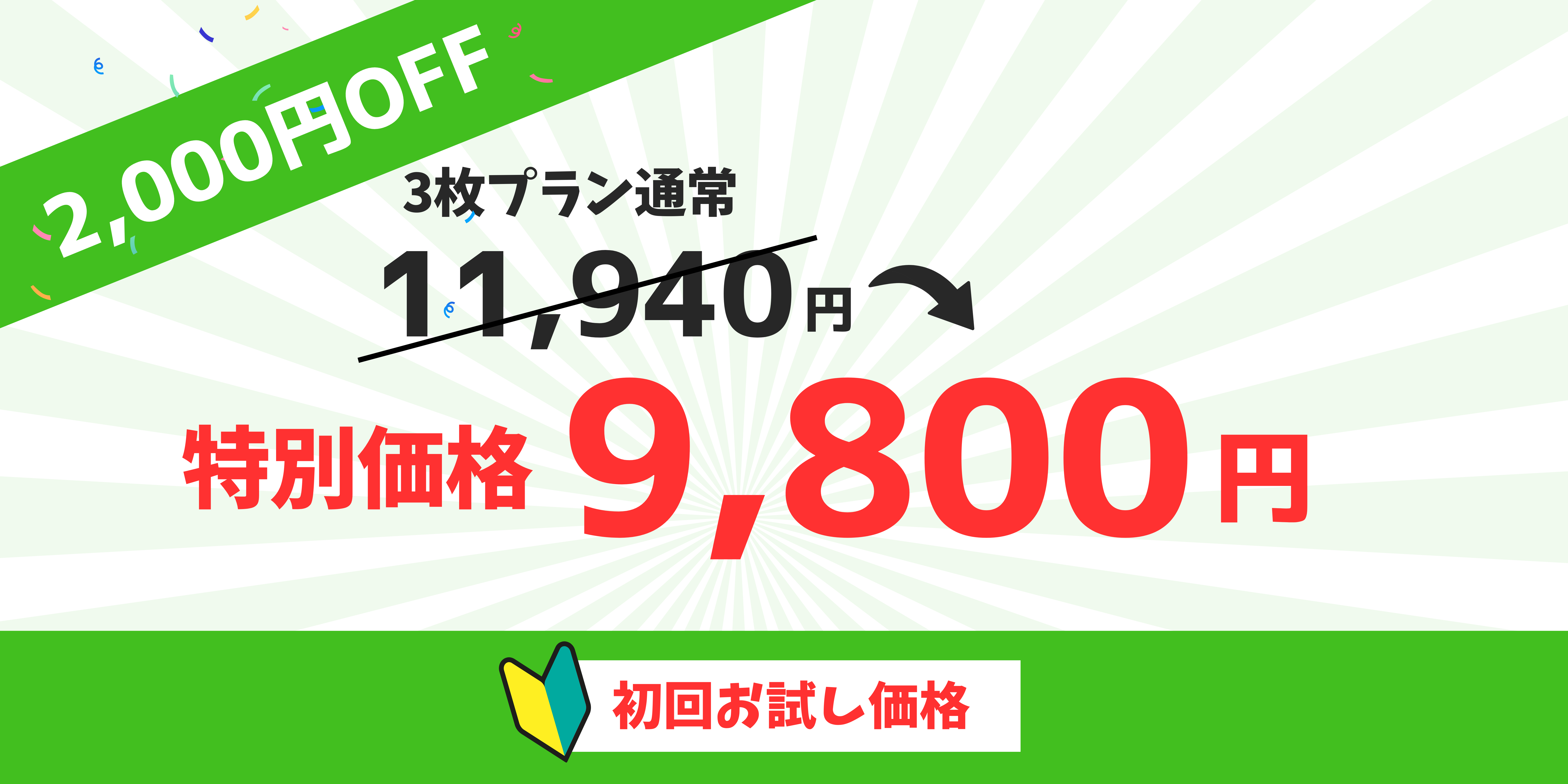 - 複数枚の方向けに¥2,000OFFのお試しパック(3枚 ¥9,800) も用意